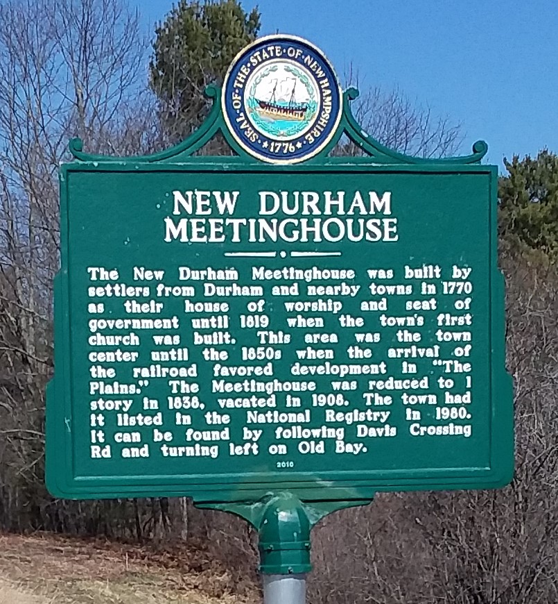 This State Marker is on Route 16, and is not easy to spot. Heading north from Farmington, it is on the right before Davis Crossing Rd. and there is no actual spot to pull off. The Meeting House is several miles east (not near the present center of New Durham). It is worth a visit, as the grounds have a maintained pound (few exist today), and a marked walking trail.