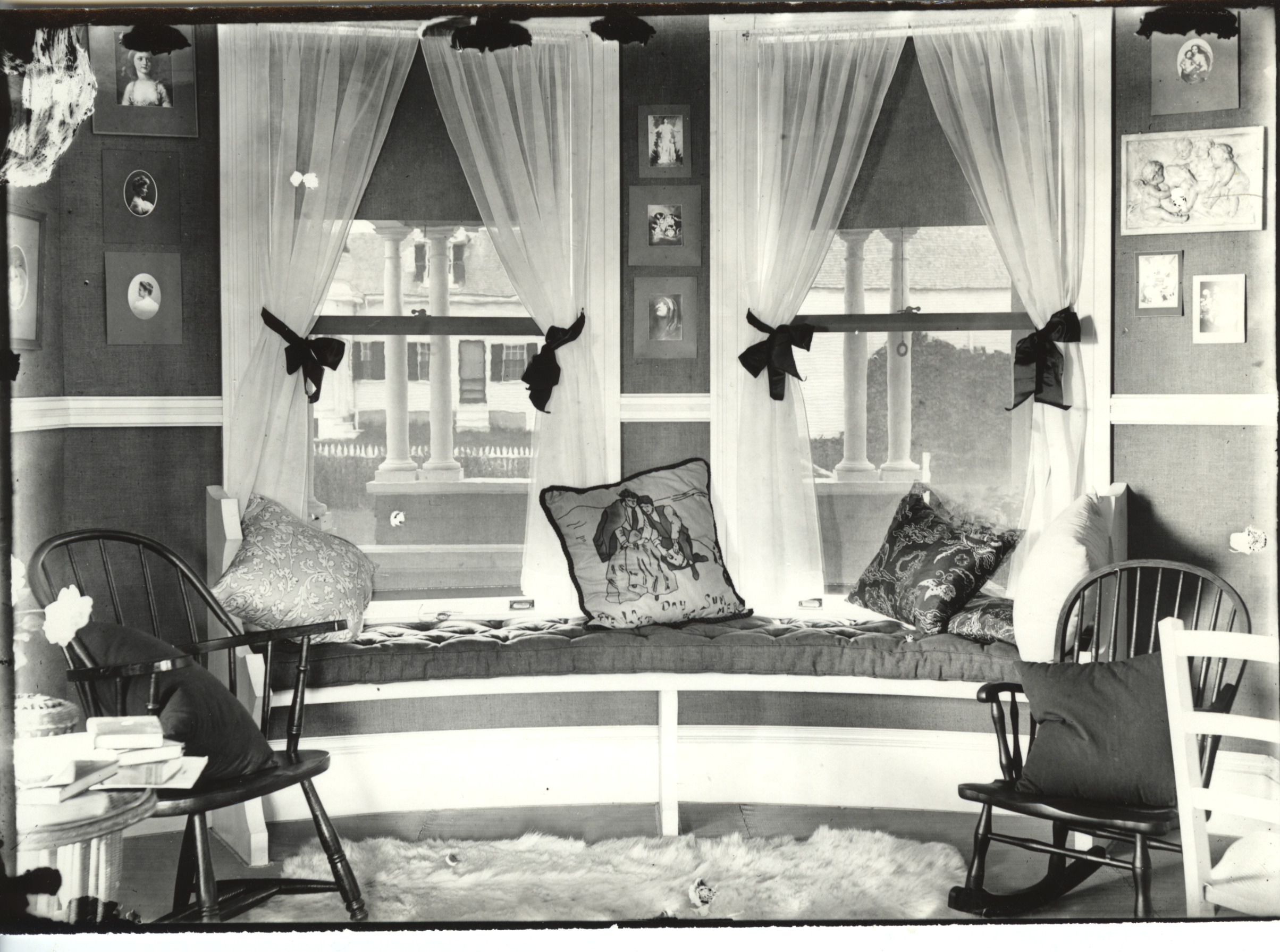 This is the interior of the Charles P. Berry house on North Main St. The house was built c. 1900 & this photo is of the same period. Berry was a doctor involved in soap manufacturing. The appearance & the columns seen through the windows reflect the living standards of a doctor. Berry was one of the first private telephone subscribers in town.