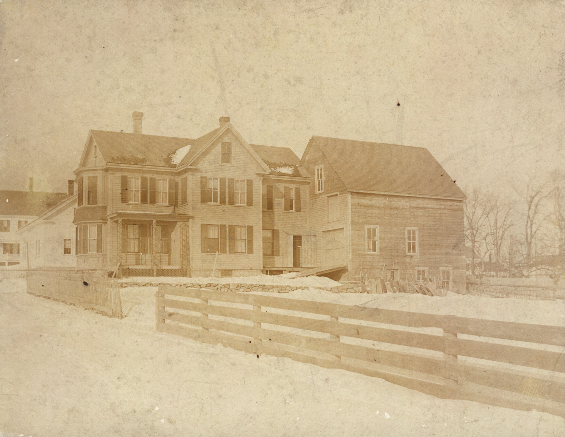 Benjamin F. Sawyer house on Pleasant St. built 1890. He was a carpenter & built the house himself. His son, Arthur H. Sawyer, lived here until 1909 & took this photo. Arthur was a photographer.